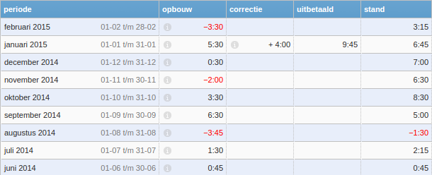 Medewerkers zien in hun eigen account hoeveel plus-/minuren zij hebben opgebouwd.