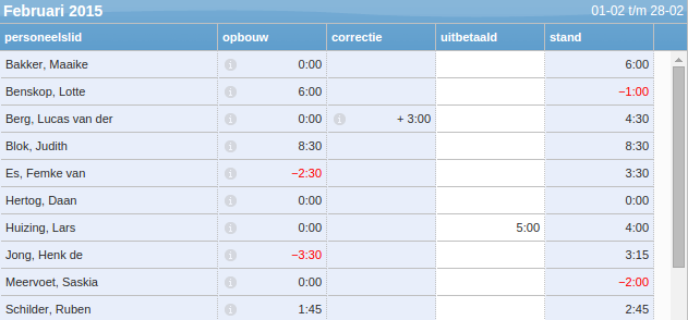 Daarnaast zien ze de uitbetaalde uren en eventuele correcties.