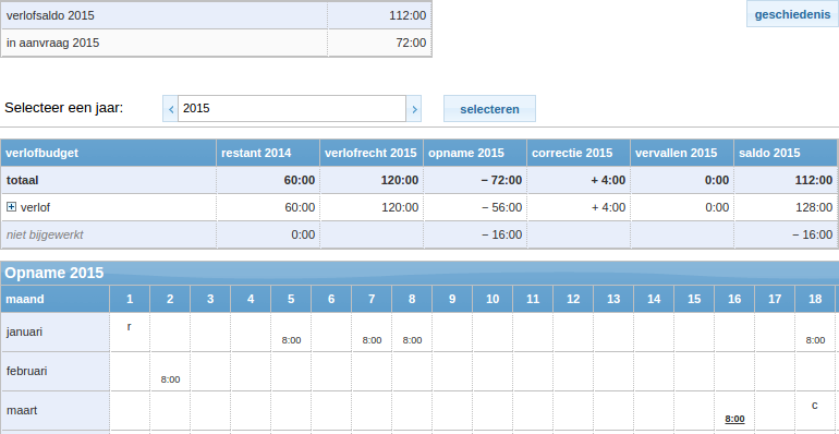 Medewerkers zien op de verlofkaart hun huidige verlofsaldo. In een kalender kunnen ze precies nagaan wanneer en hoeveel uur ze verlof hebben opgenomen. Kent u een verlofaanvraag toe dan is de verlofkaart direct up-to-date.