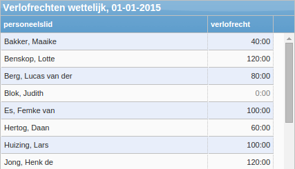U kunt met verschillende verlofbudgetten werken, bijvoorbeeld wettelijk verlof, bovenwettelijk verlof en tijd-voor-tijd. Het roosterprogramma neemt restanten van voorgaande jaren automatisch mee en houdt rekening met eventuele vervaldatums.